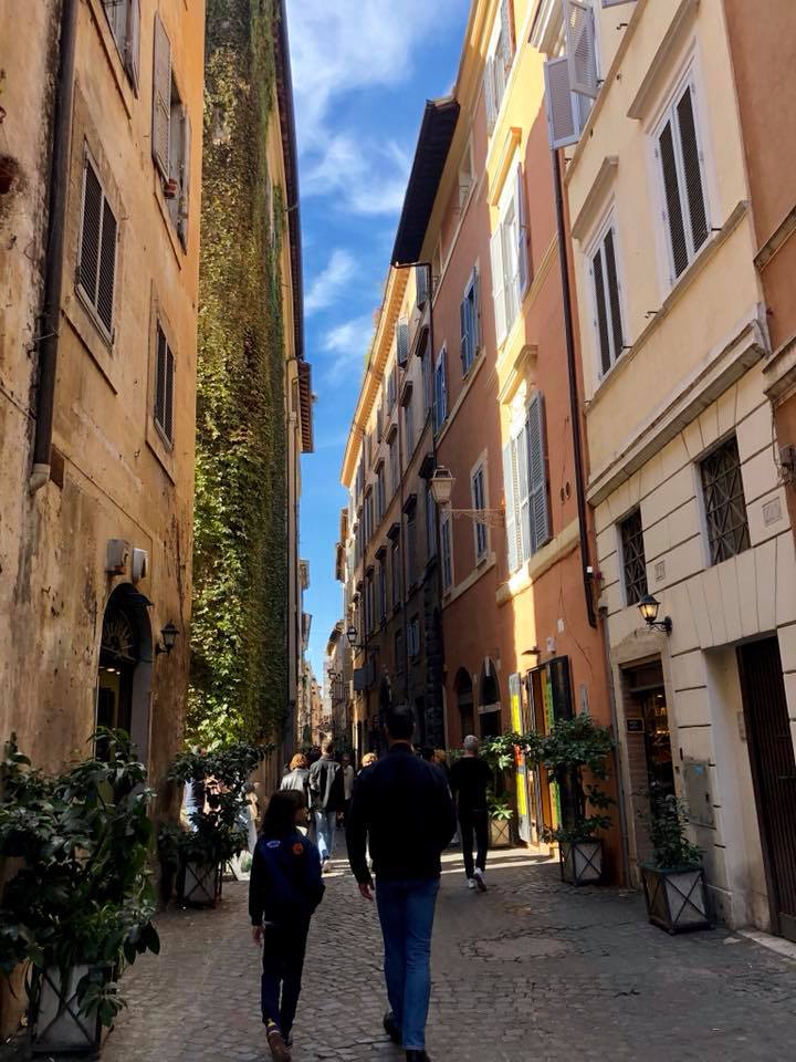 Am cumparat biletele de avion cu vreo trei saptamani inainte si-am ales zboruri, cum va spuneam, care sa ne permita sa ne bucuram de zile pline. Dupa avion, ne-am ocupat si de cazare. Am ales un hotel micut si simplu, potrivit pentru familii, cu review-uri bune si cu marele avantaj ca era situat in buricul targului, la Piazza di Spagna. Astfel incat am putut ajunge pe jos peste tot pe unde ne-a interesat.